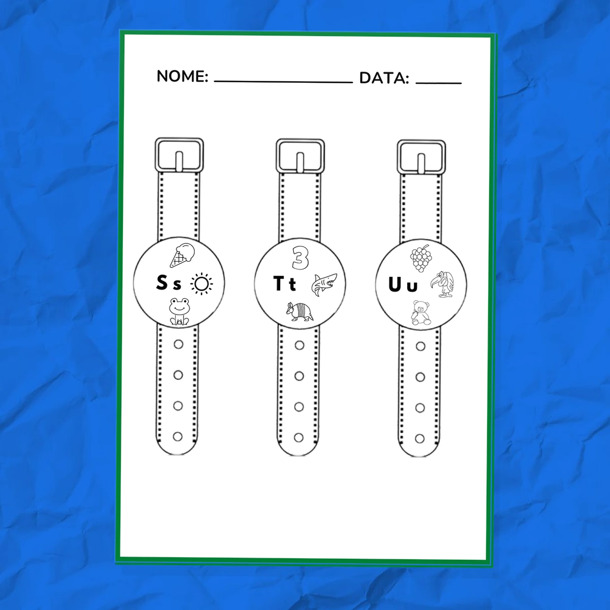 Este caderno traz uma proposta diferenciada, apresentando as letras do alfabeto (de Aa a Pp) com a temática de relógios. Ideal para variar os estímulos visuais durante a alfabetização.