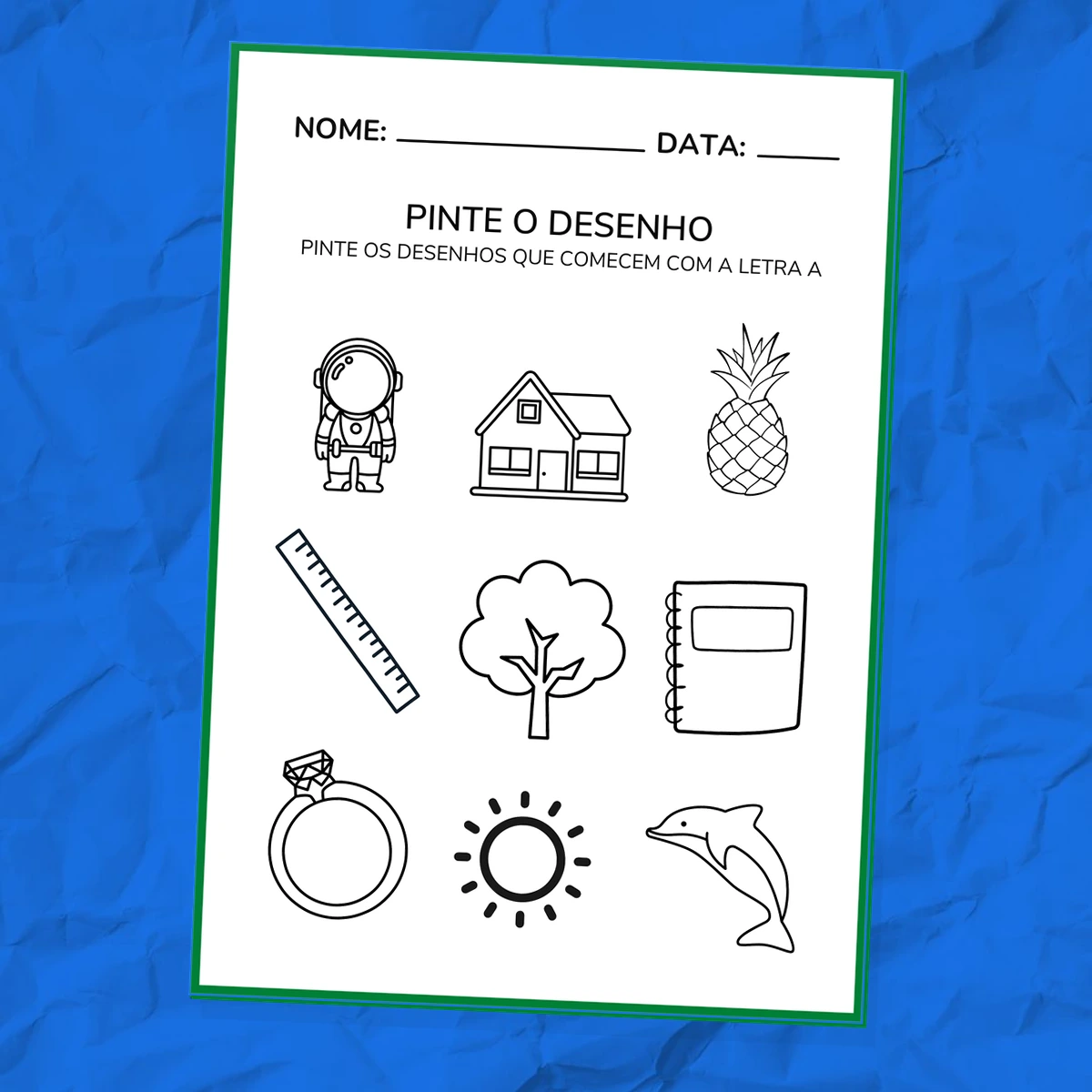 Este caderno vai além de simples desenhos para colorir. Ele integra a atividade artística com desafios de alfabetização, tornando o momento de pintar uma aula de português.