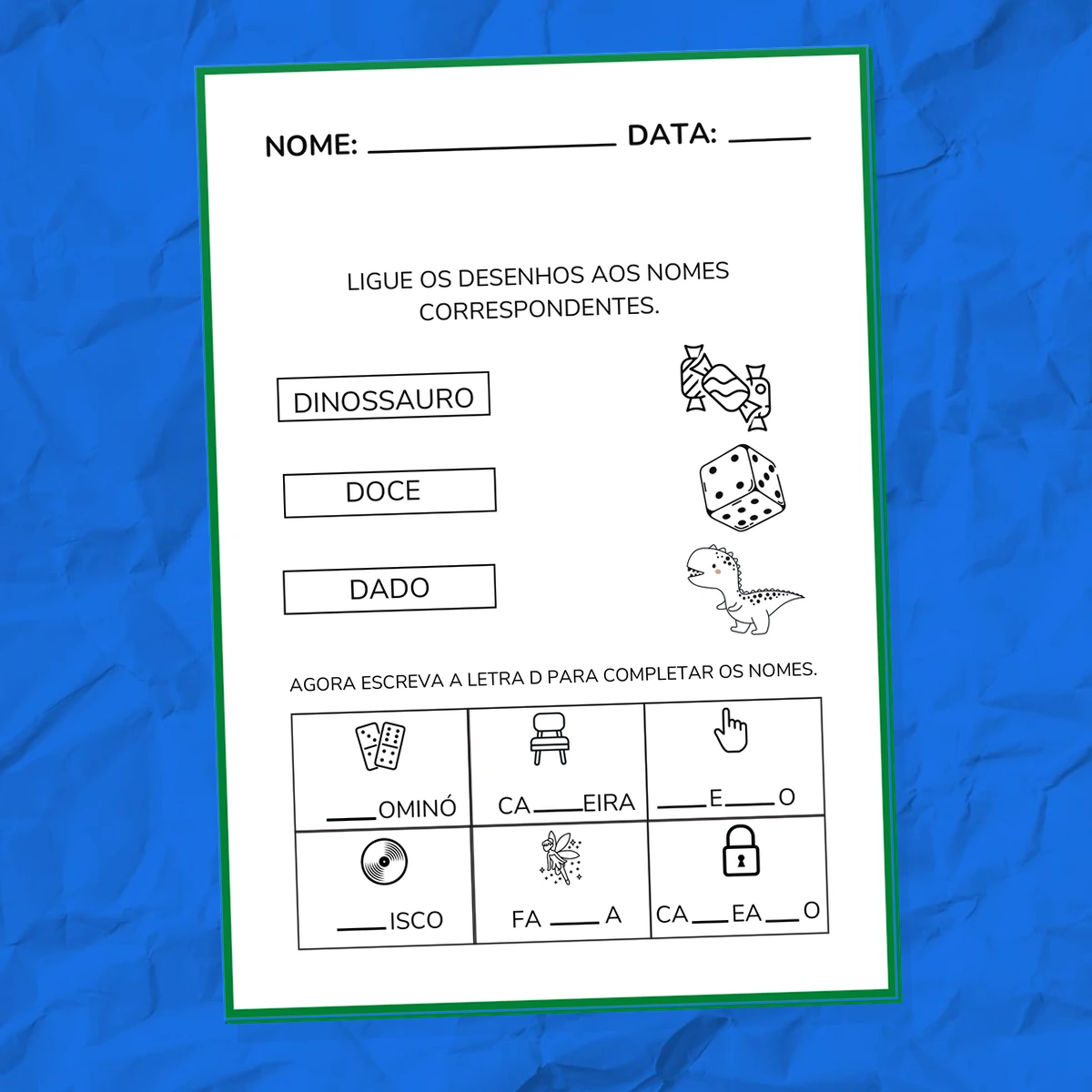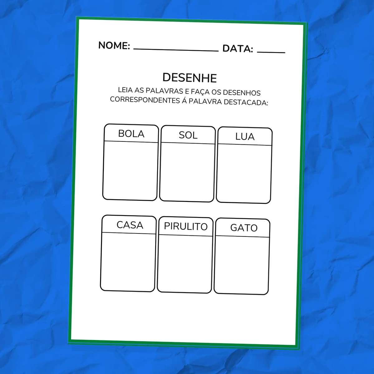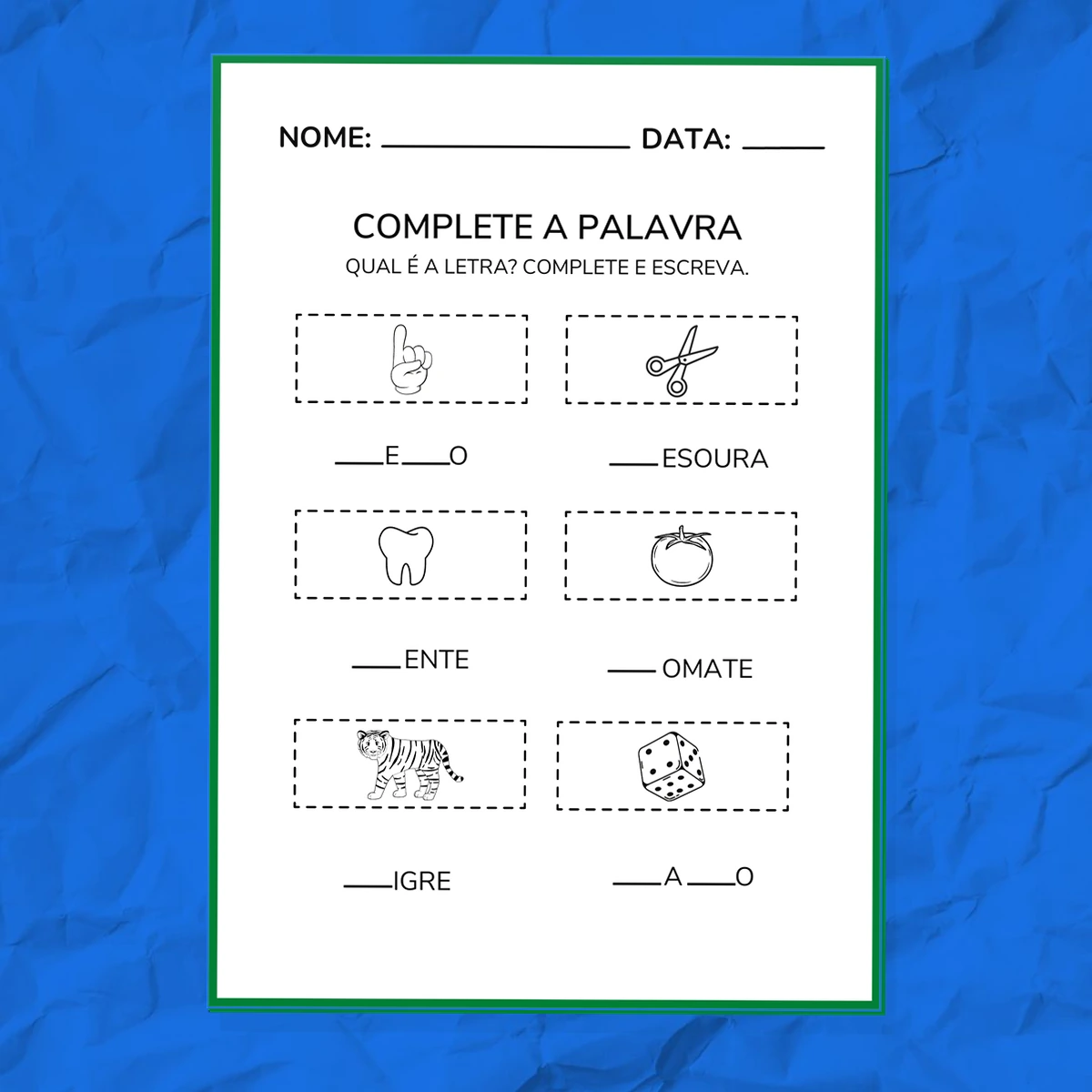 Um caderno avançado para crianças que já conhecem as letras e estão começando a estruturar palavras. Foca na análise completa da palavra (início, meio e fim).