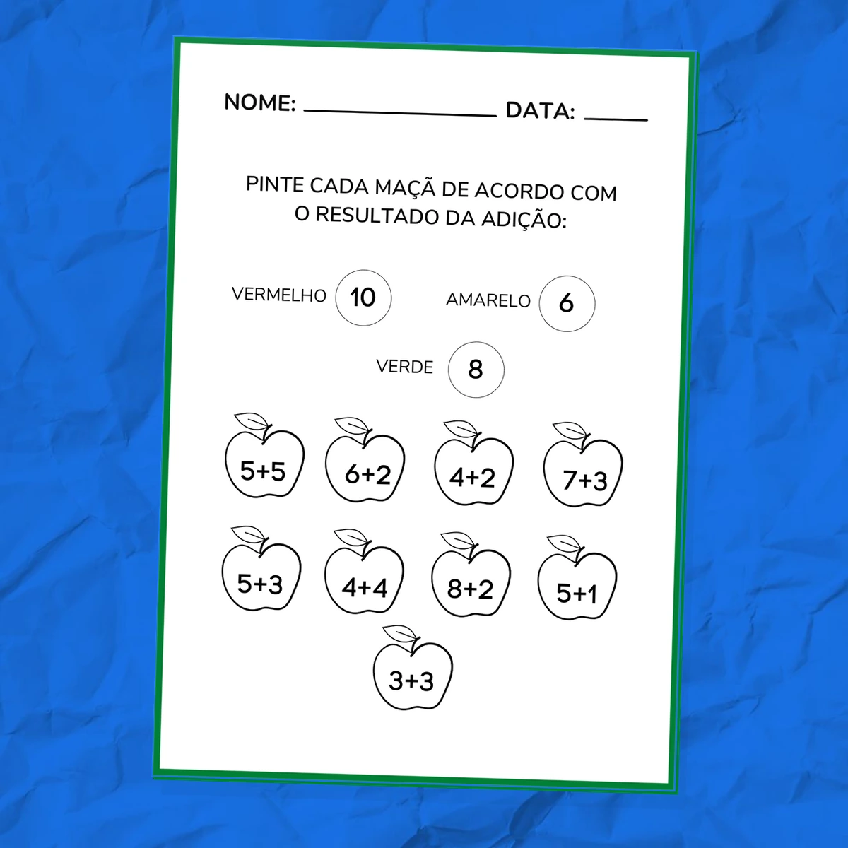 • Desafio das Cores: A atividade de pintura de maçãs continua, onde a criança deve encontrar o resultado (5, 6, 8, 10) para aplicar a cor correta.